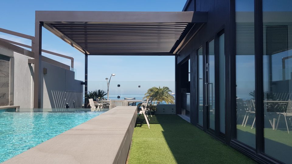 In consultation with Windust Architecture a LouvreTec 200 Super opening and closing roof was selected for the top level of this beach front property. The scope from the client was to create an outdoor entertaining space with year-round use that could withstand the extreme wind zone and corrosive environment of being directly opposite the bay.